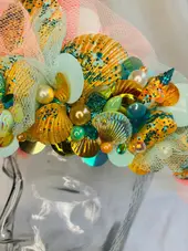 Deze hoofdband is handgemaakt. We stopten veel aandacht in deze creatie, aangevuld met een flinke dot liefde en een toef enthousiasme. En dat zie je terug. We houden van details, toffe kleurcombinaties, echte schelpen, veel glitter en tule, zodat jij met deze hoofdband echt het schitterende middelpunt van je feest bent!