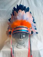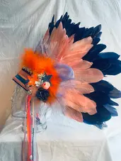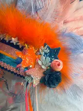 Deze tooi is handgemaakt. We stopten veel aandacht in deze creatie, aangevuld met een flinke dot liefde en een toef enthousiasme. En dat zie je terug. We houden van details, toffe kleurcombinaties, veel glitter en mooie veren, zodat jij met deze tooi echt het schitterende middelpunt van je feest bent!