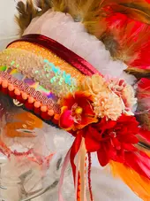 Deze tooi is handgemaakt. We stopten veel aandacht in deze creatie, aangevuld met een flinke dot liefde en een toef enthousiasme. En dat zie je terug. We houden van details, toffe kleurcombinaties, veel glitter en mooie veren, zodat jij met deze tooi echt het schitterende middelpunt van je feest bent!