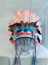 Deze tooi is handgemaakt. We stopten veel aandacht in deze creatie, aangevuld met een flinke dot liefde en een toef enthousiasme. En dat zie je terug. We houden van details, toffe kleurcombinaties, veel glitter en mooie veren, zodat jij met deze tooi echt het schitterende middelpunt van je feest bent!